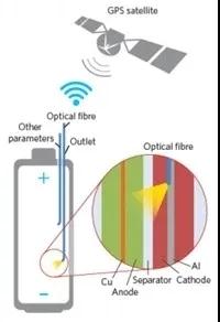 a.集成和开发适用于电池的多种传感器,将智能功能嵌入电池:光学、电学、热学、声学和电化学传感器用于设计/开发固态电解质(SEI)中间相动态监测功能。比如利用电阻温度检测器(RTD),热敏电阻,热电偶等温度传感器监控电池内外的局部及整体温度变化。电化学传感器主要用于监控电池界面SEI增长,氧化还原穿梭物质和重金属溶解。压力传感器可以检测电极应变和压力变化,从而反应电池的SoC以及SoH状态。光学传感器则可以对电池局部温度,压力和应变通过光学信号同时感应,其中光子晶体纤维传感器可以对多感应信号同时采集但又解耦合分析,是未来发展多参数监测新型传感器的趋势。