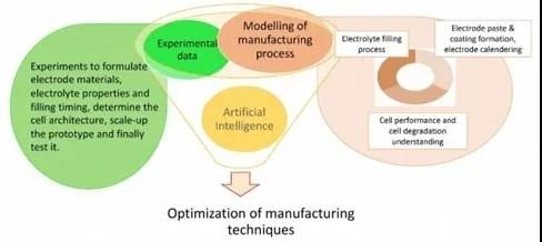 b.制造过程数字化:开发灵活的制造流程和高精度建模工具,以优化工艺、条件和机器参数,开发用于处理电极浆料,电极片生产,电池组装,电池包组装和电池性能的实时模型(即用于电池制造的数字化模型)。
