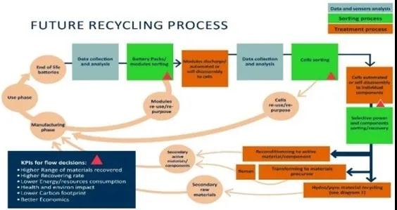 图8. 未来的电池回收过程:直接回收与再利用过程有机的整合