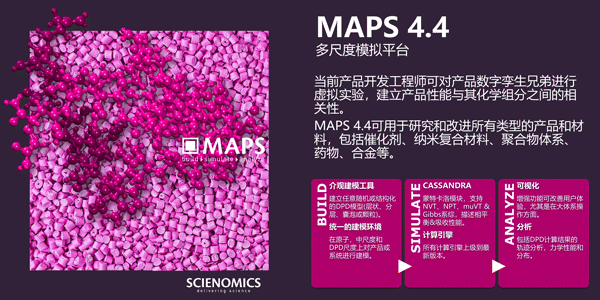 MAPS 4.4是Scienomics公司Materials and Processes Simulations多尺度建模和模拟平台的大版本升级。新版本中应用了当前最炙手可热的数字孪生技术。MAPS 4.4可用于研究和改进所有类型的产品和材料,包括催化剂、纳米复合材料、聚合物体系、药物、合金等。