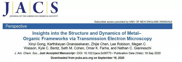 Insights into the Structure and Dynamics of Metal–Organic Frameworks via Transmission Electron Microscopy, J. Am. Chem. Soc. 2020.