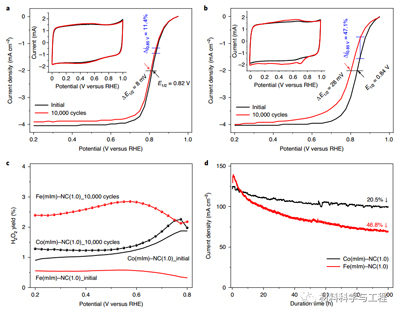 图4 在RRDE和MEA上研究了催化剂的耐久性示意图