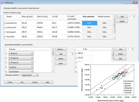 SCIPHARMA 为满足制药工业中通过有限的实验数据,精确预测药物在纯溶剂和混合溶剂中的溶解度而开发。基于PC-SAFT, SCIPHARMA 可计算药物PC-SAFT参数,并且可通过一种可预测的方法计算其在纯的和混合溶剂中的溶解度。