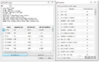 给出详细的基元反应信息和产物出现时间和频率、存活时间等信息