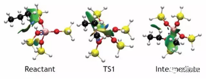 每一步反应过程中非键相互作用C 原子和沸石中O 原子存在强烈的非键相互作用(TS1 和TS2)。增加TS 稳定性,减少活化能。