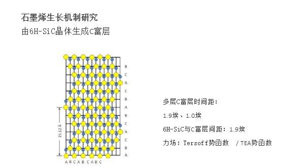 分子模拟方法描述石墨烯在6H-SiC表面外延生长;C富层间距有一定规律,1.9埃、1.0埃......;