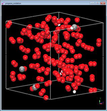 模拟计算需要几个小时。在MAPS中加载模拟输出文件,检查轨迹。系统没有显示键存在,经常使用CPK显示方式,将所有原子收进晶包内。在最终的构型中,您可以看到丙烯分子被部分分解,使用更长的模拟时间(1500ps)可以完成整个氧化过程。