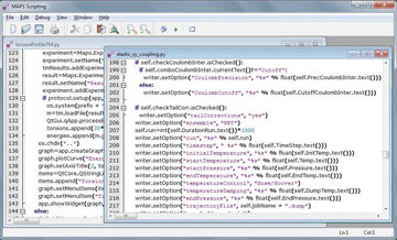 MAPS包含一个嵌入式Python解释器和一个集成的开发环境。MAPS用户界面可执行的功能与整个化学数据模型,都可以通过在MAPS中运行Python脚本实现。