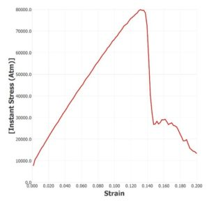 Figure 2:沿x轴进行20 ps的NPT形变模拟得到的应力-应变曲线