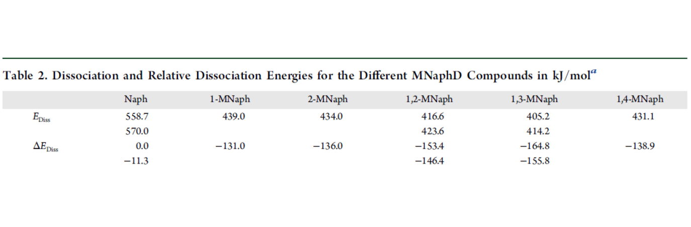 多环芳香烃(PAHS)是有机混合物,由多个芳香环键合或粘接形成,具有很强的非局域化电子。PAHS 多存在于化石燃料,如原油,但也能通过高温反应合成。了解 PAHs 的热稳定性是多个工业过程中的关键问题,如原油的热解或高温反应。更重要的是深层次理解炭黑或烧炭在上述过程中的形成机理,对化工过程非常重要,并已经广泛在 PAHS 化合物热解实验中研究。萘衍生物属于较小的 PAHS 混合物,经常用来代表复杂 PAHS 分子,进行建模。实验表明甲基取代基的位置和数目对萘衍生物性质有较大影响。本案例基于分子尺度研究取代基对 PAHS 分子稳定性影响和热分解过程的热依赖性。