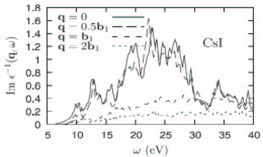 发光材料的理论机理研究中关键是正确描述电子的激发态,传统的基态能级差只能描述吸收光谱。MAPS-ABINIT的 GW 方法能处理固体的电子激发态计算。L.W.Campbell等采用第一原理计算方法计算了 NaI 和 CsI 的电子激发态,包括介电函数、能量损失谱、生命周期和准粒子散射率。重点考察了准粒子的能带边界。