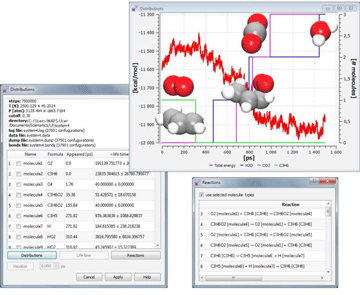 REAXFF ANALYSIS对系统进行重构,以追踪模拟过程中产生或破坏的分子种类。用户以表格形式查看结果并选择感兴趣的种类,以便可视化它们的三维结构,以及查看其种类在模拟过程中如何演变的图像。